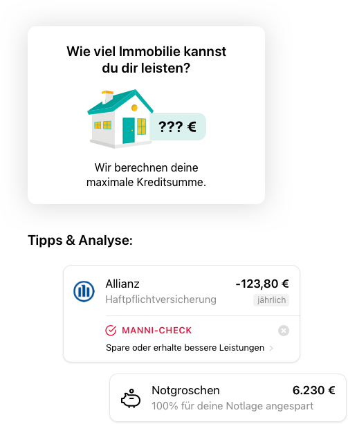 MANNI zeigt dir eine Prognose zum Monatsende und berücksichtigt dabei deine Einnahmen und Ausgaben.