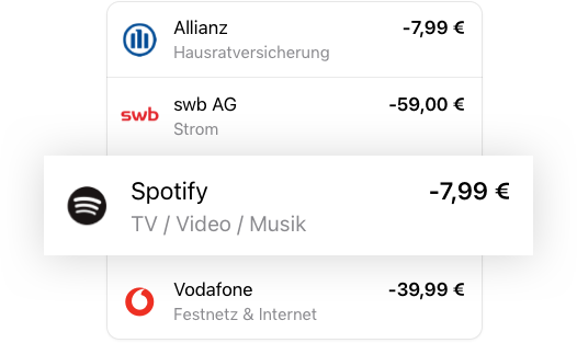 Anders als bei vielen anderen Haushaltbuch-Apps werden deine Einnahmen und Ausgaben automatisch kategorisiert. So sparst du richtig viel Zeit und hast immer einen Überblick, was du für Shopping, Lebensmittel oder Mobilität ausgibst.